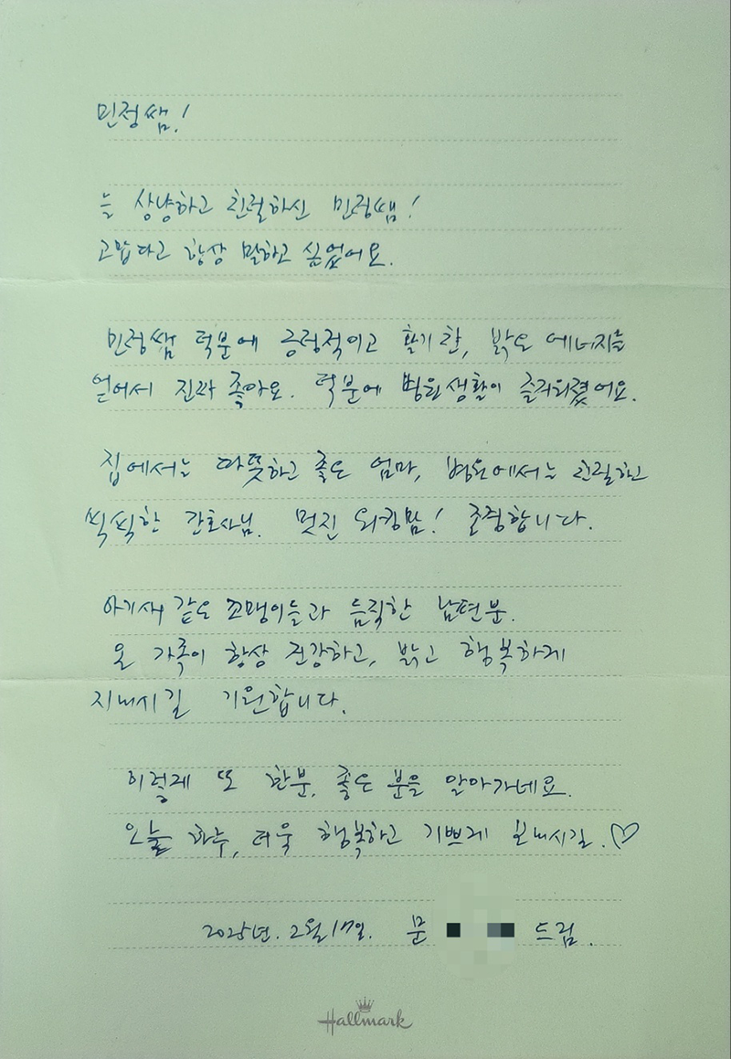 제가 다시 간호사로서 걸어갈 힘을 되찾게 해준 큰 선물이었습니다.