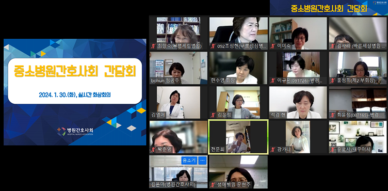 중소병원간호사회 간담회가 1. 30.(화) 실시간화상회의(ZOOM)로 진행되었다.