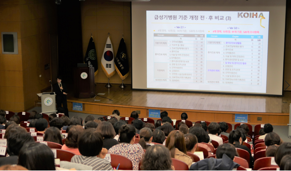 이번 3주기 인증기준의 개정 배경 및 방향과 주요 내용에 대해 의료기관평가인증원 황인선 팀장이 설명하였으며 이어서 각 영역의 변화된 인증기준에 대한 설명으로 진행 되었다 .