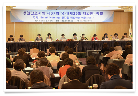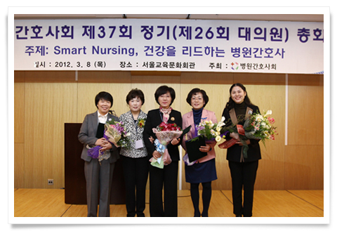 2012년 3월 8일 서울교육문화회관 가야금홀에서 병원간호사회 제37회 정기총회가『Smart Nursing, 건강을 리드하는 병원간호사』라는 주제로 성명숙 대한간호협회 회장, 성상철 대한병원협회 회장을 비롯하여 박정호, 이동란, 성영희 증경회장과 내·외귀빈, 대의원 등 400여명이 참석하여 성황을 이루었다.