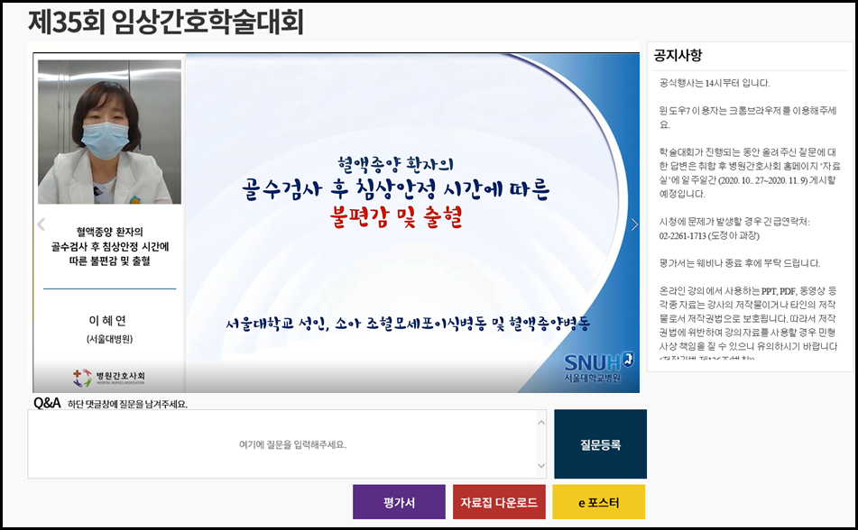 ‘제35회 임상간호학술대회’ 개최 결과 (20. 10. 23)