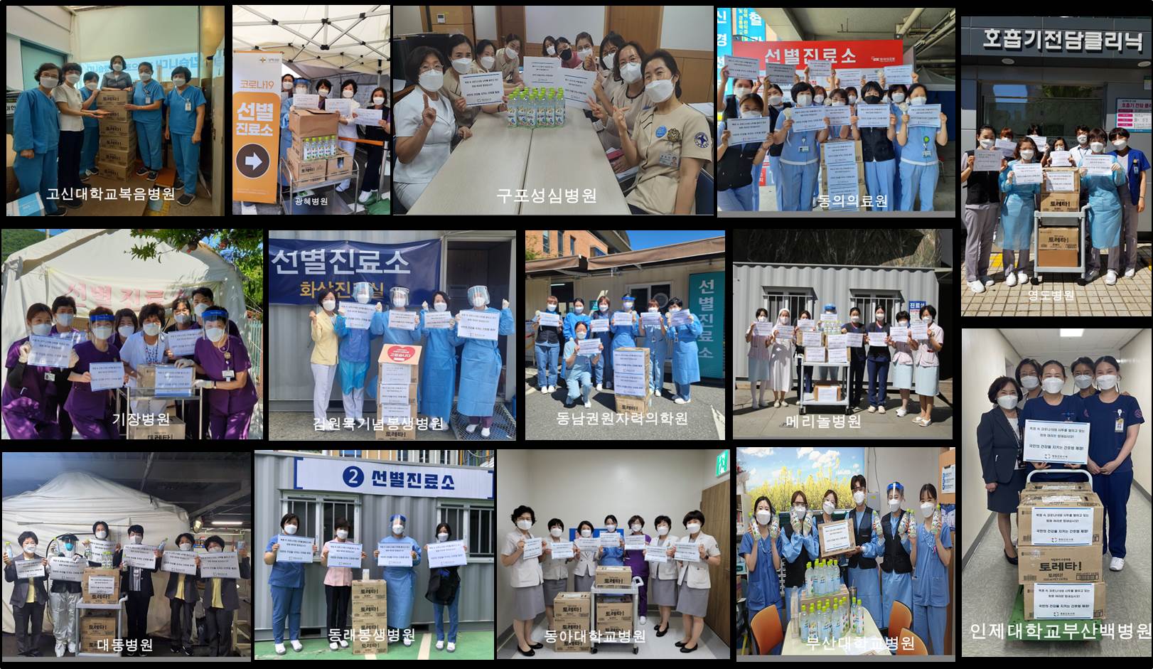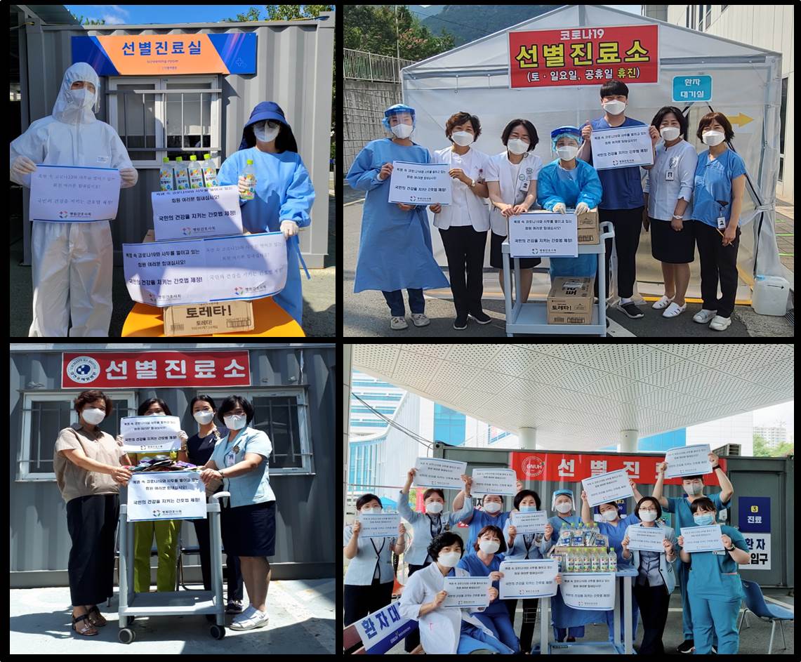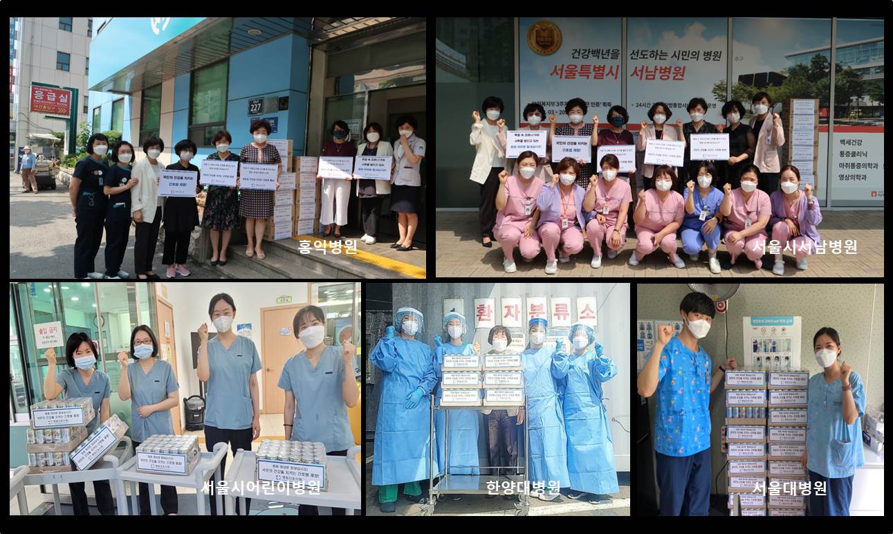 본회와 시도병원간호사회에서는 연일 이어지는 폭염으로 선별진료소에서 고생하는 간호사들에게 감사와 격려의 마음을 전하고자 16개 시도병원간호사회를 중심으로 322개 회원병원 선별진료소에 음료를 전달하였습니다.