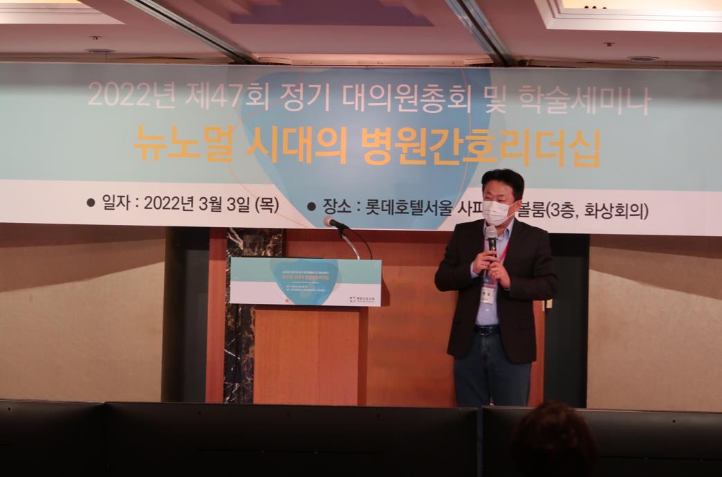 2022년 3월 3일 롯데호텔서울 사파이어볼룸(3층, 실시간 화상회의)에서 병원간호사회 제47회 정기 대의원총회 및 학술세미나를 『뉴노멀 시대의 병원간호리더십』이라는 주제로 본회 조문숙 회장을 비롯하여 더불어민주당 이수진 국회의원, 국민의힘 최연숙 국회의원, 대한간호협회 신경림 회장, 박영우 증경회장 등 귀빈과 임원 및 대의원 등 350여명이 참석한 가운데 성황리에 개최하였다.