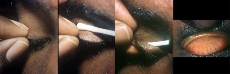 - 눈꺼풀을 당기며 젖혀서 눈꺼풀 안쪽에 이물질이 있는지 확인합니다. 이물질이 눈에 보이는 경우 물을 이용하여 조심스럽게 제거를 시도해 보고 잘 안되면 무리하지 말고 안과를 찾아야 합니다.