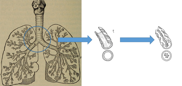 일반적인 사람에게는 큰 문제를 발생하지 않는 특정 알레르기원이 그 알레르기원에만 과민반응을 보이는 환자의 체내로 침투하면 면역 반응으로 다양한 염증 물질들을 분비합니다. 이로 인해 공기가 폐로 들어가는 통로인 기관지나 세기관지가 부어오르고 폐에서의 분비물(담)이 증가하고 기관지나 세기관지 경련이 발생합니다.