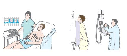 진단을 위한 검사에는 전문의와의 문진 및 신체 검사, 심전도 검사, 흉부 사진 촬영, 혈액검사, 심장초음파 혹은 기타 특수검사(운동부하 검사, CT, MRI 혹은 관상동맥 조영술 등)을 시행할 수 있습니다.