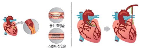 - ② 관상동맥 성형술 및 스텐트 삽입술(시술) 또는 관상동맥 우회로술(수술)