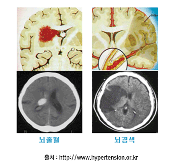 뇌졸중(중풍)은 고혈압의 합병증 중 한국인에게 가장 많이 발생하는 질환이며, 고혈압 환자에서 정상인보다 7배 더 많이 발생합니다. 고혈압을 방치하게 되면 뇌혈관에 동맥경화가 발생하기 때문에 점차 딱딱해지고 좁아지다가 뇌경색이 생기게 되며, 또한 탄력을 잃은 혈관이 터질 경우 뇌출혈이 발생합니다. 뇌졸중의 증상으로는 두통, 구토, 마비, 의식손상 등이 있을 수 있습니다.