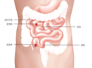 대장을 모두 절제했거나 일시적으로 대장으로의 변 통과를 막기 위해 |