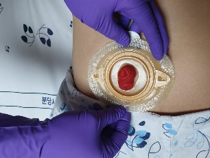 장루 교환 시기는 장루의 활동이 활발하지 않은 식전이나 식후 2~3시간 경과 후가 좋습니다. |