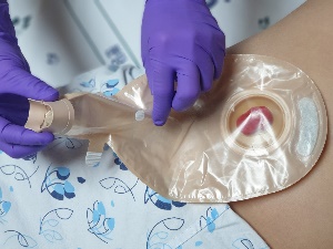 장루 주머니 교환 시 항상 장루의 크기와 색깔, 배설물을 주의 깊게 관찰해야 하며 1/2정도 차면 비우도록 합니다. 장루 피부 보호판은 장루보다 2-3mm 크게 오려 사용하고 주 2-4회 교환합니다.