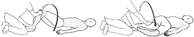 엉덩이와 무릎을 충분히 뻗게 하고, 입안의 분비물이 나올 수 있게 고개를 옆으로 돌립니다. 무릎과 발목사이를 올려 발의 정상체위를 도와줍니다.