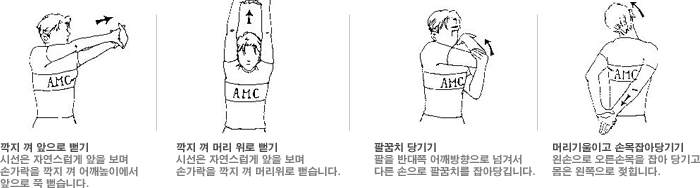 어깨통증체조는 어깨 주위의 근육이 굳어있는 경우에 실시하는 체조입니다. 현대인들의 어깨 통증 해소를 위해 다음과 같은 스트레칭을 적극적으로 추천합니다.