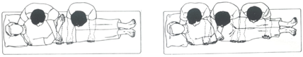 - 똑바로 누운 자세에서 옆으로 누운 자세로 옮기기