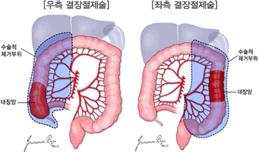 2~3기 환자는 암이 발견된 부분과 림프절을 전부 절제하는 근치적 절제술을 합니다. 4기 환자의 경우 전이가 된 부위를 절제할 수 있으면 수술을 실시하나 그렇지 않은 경우에는 먼저 항암치료로 암크기를 줄여 놓고 수술합니다. 수술 전 CEA수치를 체크하고 수술 후 3~6개월마다 검사해 암의 재발 여부를 검사합니다. 수술 1년 후 대장내시경을 필수로 받아야 하고, 그 후 3년에 한 번씩 시술하여 사후 예방을 합니다.
