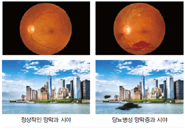- - 망막(카메라 필름에 해당하는 부분)의 미세혈관에 이상이 생겨 혈관이 새거나 막히게 됩니다.