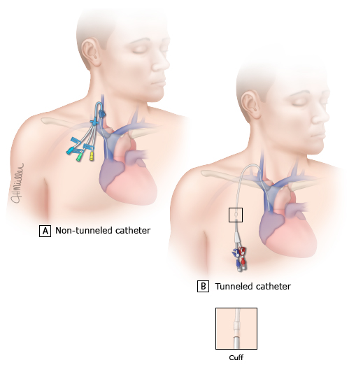 - 치료 때마다 두 개의 혈관 바늘을 꽂아야 합니다.