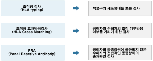 공여자와 수혜자간의 조직 거부반응 여부를 가리기 위한 검사 |
