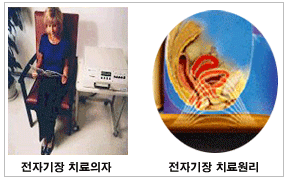 자기장 치료는 치료 의자에 일상 옷을 그대로 입고 앉아있으면 됩니다. 치료원리는 전자기장 의자에서 자기장이 형성되어 골반근육을 수축, 이완시켜 기능회복을 도와주며, 또한 방광의 과도한 수축을 억제시켜 소변을 자주 보거나 급한 소변을 참지 못해 흘려버리는 절박성 요실금을 치료하는데 사용됩니다.