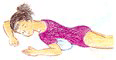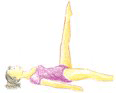 똑바로 누워 우측 무릎을 올려 허벅다리는 배에 닿도록 하고 발은 엉덩이에 닿도록 합니다. 다음 두 다리를 쭉 펴서 아래로 내립니다. 두 다리를 교대로 합니다(5회씩, 1일 3회).