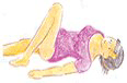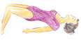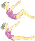 양쪽 다리를 벌리고 발을 끌어 무릎이 거의 직각이 되게 세웁니다. 둔부를 들어서 발바닥과 어깨로만 몸을 지탱하게 하고 조금 정지했다가 허리를 내립니다. 양쪽 무릎에 힘을 주어 복부근육을 수축시킵니다(5회씩, 1일 3회).