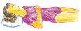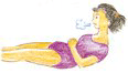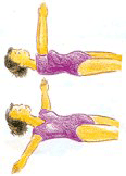 등을 바닥에 대고 바로 누워 두 팔을 머리 위로 쭉 뻗고 하나, 둘, ... 다섯까지 세면서 힘껏 몸을 편 다음 힘을 빼서 전신을 쉬게 합니다.
