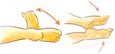 발목을 굽혔다 폈다 합니다. 발가락도 굽혔다 폈다 합니다. 발목을 좌우, 옆으로 회전시킵니다. 발끝을 펴고 발바닥을 마주보도록 발끝을 안쪽으로 굽혔다 폈다 합니다(10회씩, 1일 2~3회). 발의 피로를 풀어줍니다.