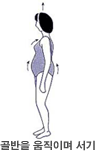 - 무릎을 조금 구부린 자세를 유지하며, 골반을 흔듭니다.