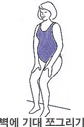 - 무릎을 조금 구부린 채 벽에 기대어 섭니다.
