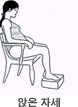 - 머리를 똑바로 한 채, 등이 의자에 편안하게 지지되도록 앉습니다.