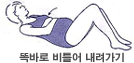 - 배 근육을 조이고 등을 바닥에 기댄 채 조금 아래로 하여 평평하게 합니다.(허리가 바닥에 닿도록 합니다)