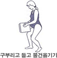 - 물건을 몸 가까이, 허리 높이로 듭니다.